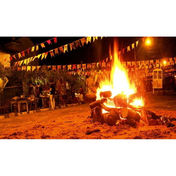 A fogueira é acesa um pouco antes para estar bonita quando os convidados chegarem.