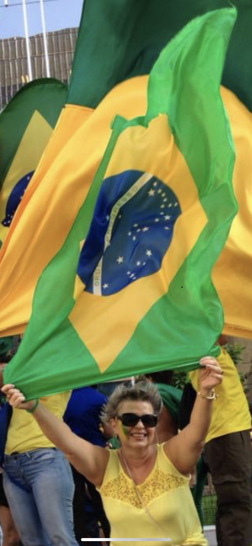 Fico a olhar longamente esse enquadramento. E vejo a Bandeira do Brasil.