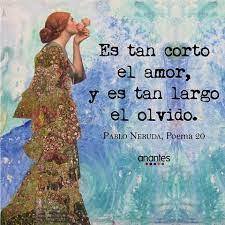 PUEDO escribir los versos más tristes esta noche. Escribir, por ejemplo: "La noche está estrellada, y tiritan, azules, los astros, a lo lejos". El viento de la noche gira en el cielo y canta. Puedo escribir los versos más tristes esta noche. Yo la quise, y a veces ella también me quiso. En las noches como ésta la tuve entre mis brazos. La besé tantas veces bajo el cielo infinito. Ella me quiso, a veces yo también la quería. Cómo no haber amado sus grandes ojos fijos. Puedo escribir los versos más tristes esta noche. Pensar que no la tengo. Sentir que la he perdido. Oir la noche inmensa, más inmensa sin ella. Y el verso cae al alma como al pasto el rocío. Qué importa que mi amor no pudiera guardarla. La noche está estrellada y ella no está conmigo. Eso es todo. A lo lejos alguien canta. A lo lejos. Mi alma no se contenta con haberla perdido. Como para acercarla mi mirada la busca. Mi corazón la busca, y ella no está conmigo. La misma noche que hace blanquear los mismos árboles. Nosotros, los de entonces, ya no somos los mismos. Ya no la quiero, es cierto, pero cuánto la quise. Mi voz buscaba el viento para tocar su oído. De otro. Será de otro. Como antes de mis besos. Su voz, su cuerpo claro. Sus ojos infinitos. Ya no la quiero, es cierto, pero tal vez la quiero. Es tan corto el amor, y es tan largo el olvido. Porque en noches como ésta la tuve entre mis brazos, mi alma no se contenta con haberla perdido. Aunque éste sea el último dolor que ella me causa, y éstos sean los últimos versos que yo le escribo.