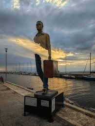 O escultor desconstrói a figura humana e retrata o imigrante: ele se vai, leva sua bagagem e parte de seu corpo. Porque não consegue partir por inteiro – sua alma, sua essência, seu amor ficarão na terra natal. A fragilidade de quem se vai, deixando tudo para trás.