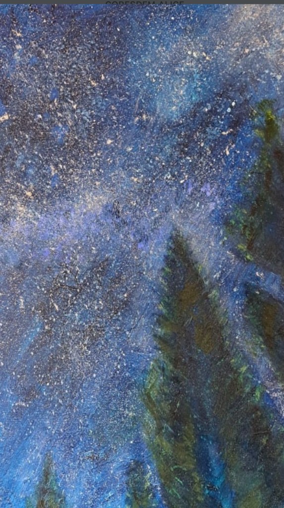 (Imagem: Paisagem noturna, óleo sobre tela, de Maria Alice)