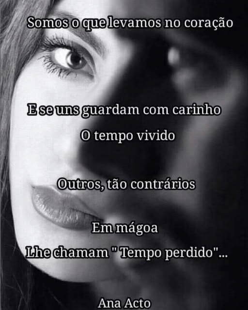 Toda a entrega em Amor Não é Tempo Perdido... Sim, o futuro é incerto Aos que amam Aos que querem amar Aos que duvidam do amor Mas se há partilha Se há união Afecto, entrega, paixão... Como poderá ser perda de tempo? Todos fazemos tentativas Ninguém sabe o que o amanhã trará E o momento desfrutado É ganho Vivido, saboreado O aceitamos em mútua entrega Então... Porquê? Porque no fim a dor absorve E anula tudo o que se viveu? Porque não se aceita Como bênção, como belo E se destrói... Somos o que levamos no coração E se uns guardam em memória Com carinho, o tempo vivido Outros, tão contrários Em mágoa, lhe chamam " Tempo perdido"...